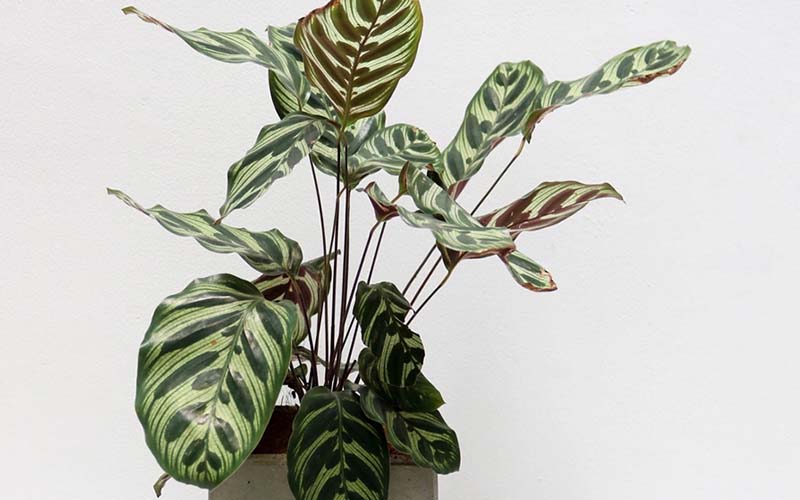 - Cây đuôi công khổng tước (Calathea Makoyana): Lá xanh sọc nâu nhạt, họa tiết giống lông chim khổng tước, rất sang trọng.