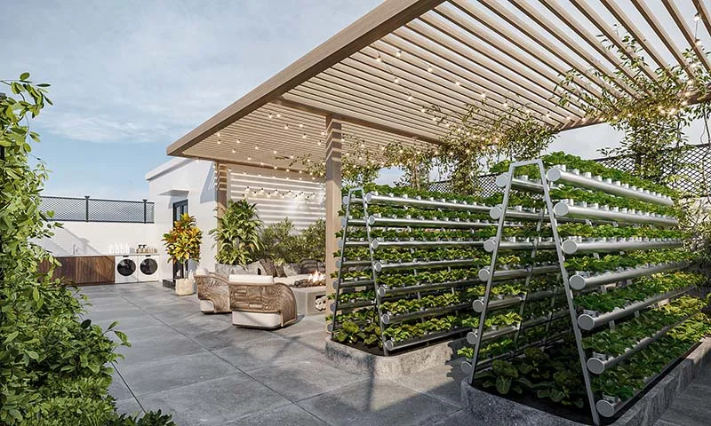Mẫu vườn sân thượng đẹp với vườn rau là một xu hướng sống xanh được nhiều người quan tâm. Mô hình vườn rau trên sân thượng không chỉ là cách tối ưu hóa không gian mà còn đảm bảo nguồn thực phẩm sạch ngay tại ngôi nhà. Với việc trồng rau trên sân thượng, bạn không chỉ có thể tận hưởng những bữa ăn ngon và bổ dưỡng, mà còn góp phần bảo vệ môi trường và tiết kiệm chi phí.